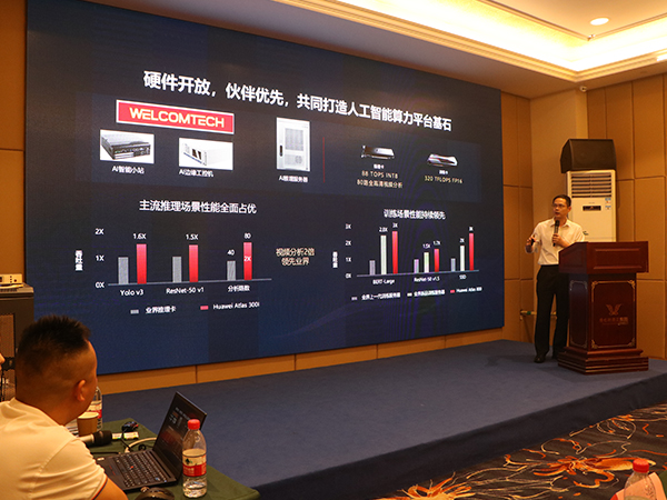 廣州市拓盈科技有限公司總經理:徐偉兵對此次會議做了開場致辭。生態發展和產品總監王林濤介紹了公司的產品發展和規劃。華為技術有限公司對拓盈在華為昇騰的產品投入和能力得到了充分的肯定和支持。同時拓盈也完成了華為昇騰認證。
