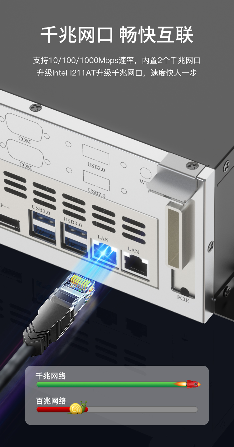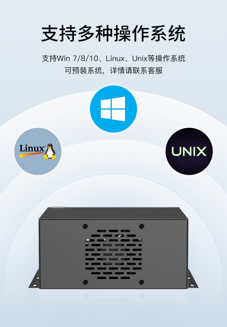 · 擁有豐富的I/O接口,2*LAN、4*USB3.0、2*USB2.0、4*COM