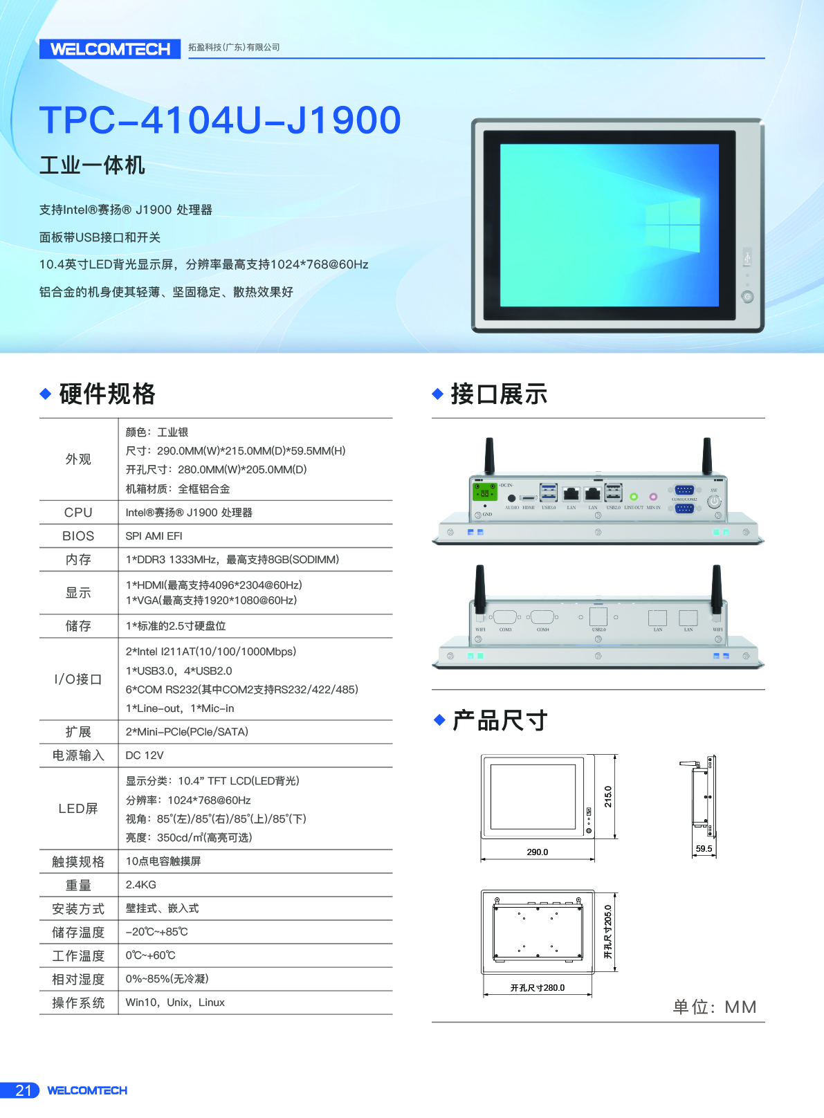 工業(yè)一體機(jī)TPC_4104U_J1900