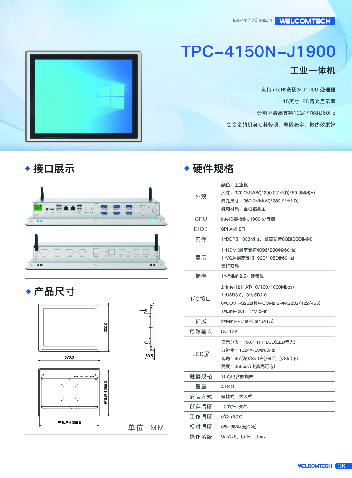 TPC-4150/酷睿8代/10代/15寸工業觸摸一體機