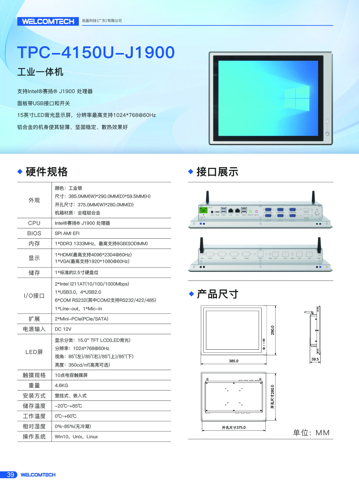 WPC-4150/8代/10代/15寸工業觸摸一體機