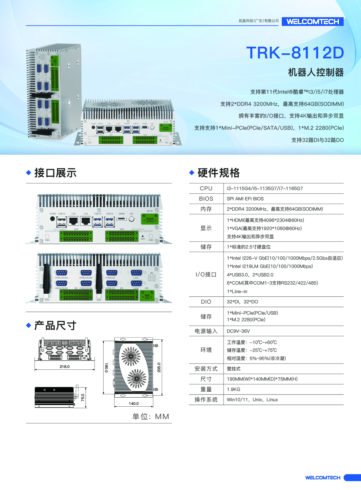 TRK-8112D/酷睿11代I3I5I7/擴展64路DIO