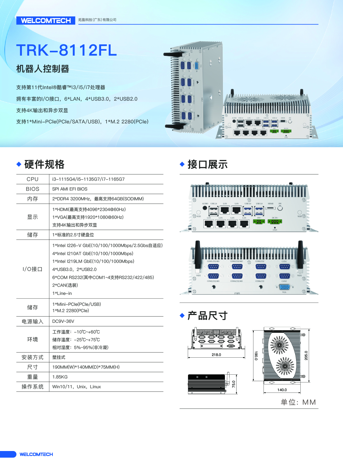 TRK-8112UL/11代4網14USB口工控機
