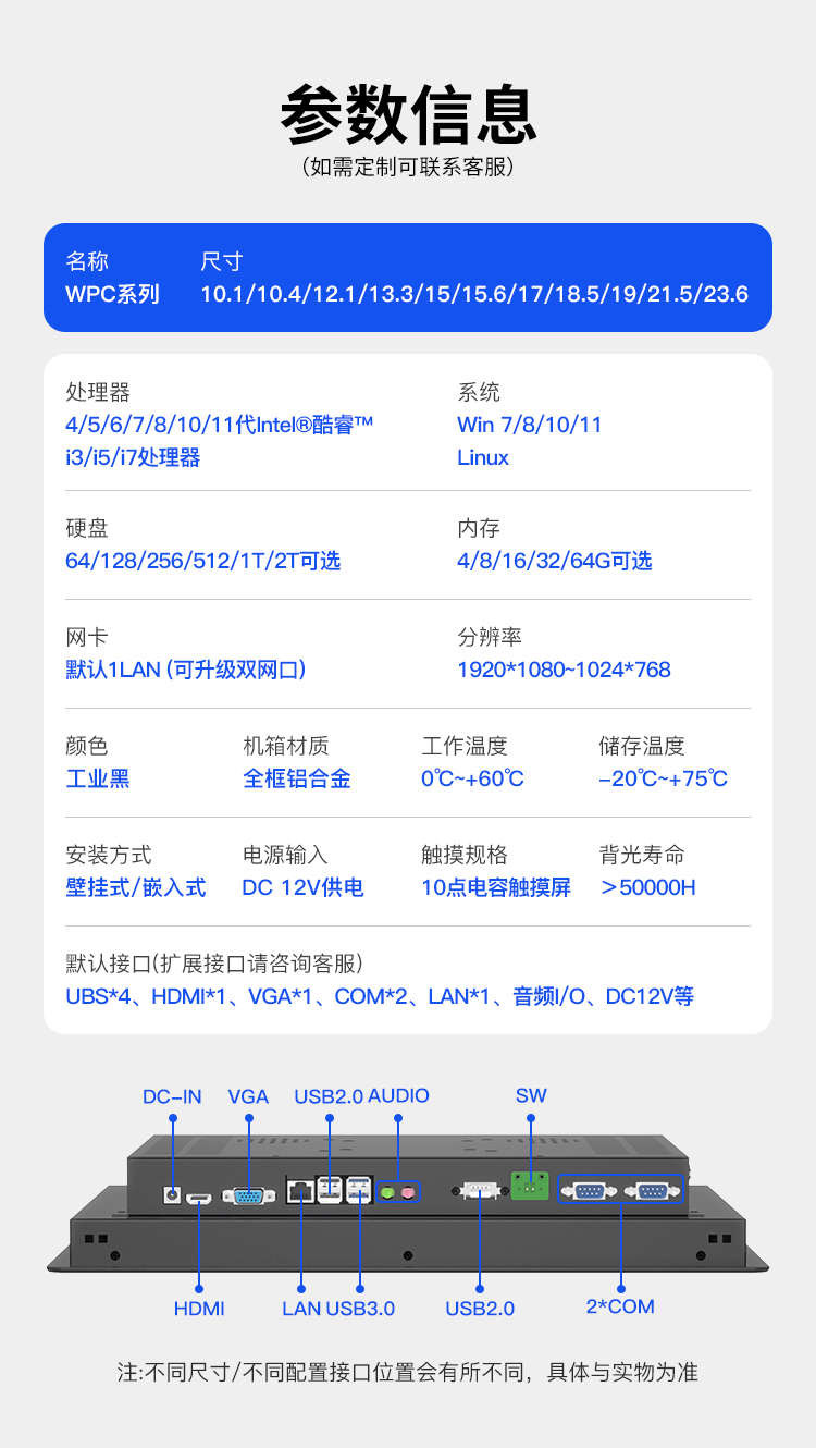 WPC-4133/8代/10代/13.3寸工業觸摸一體機