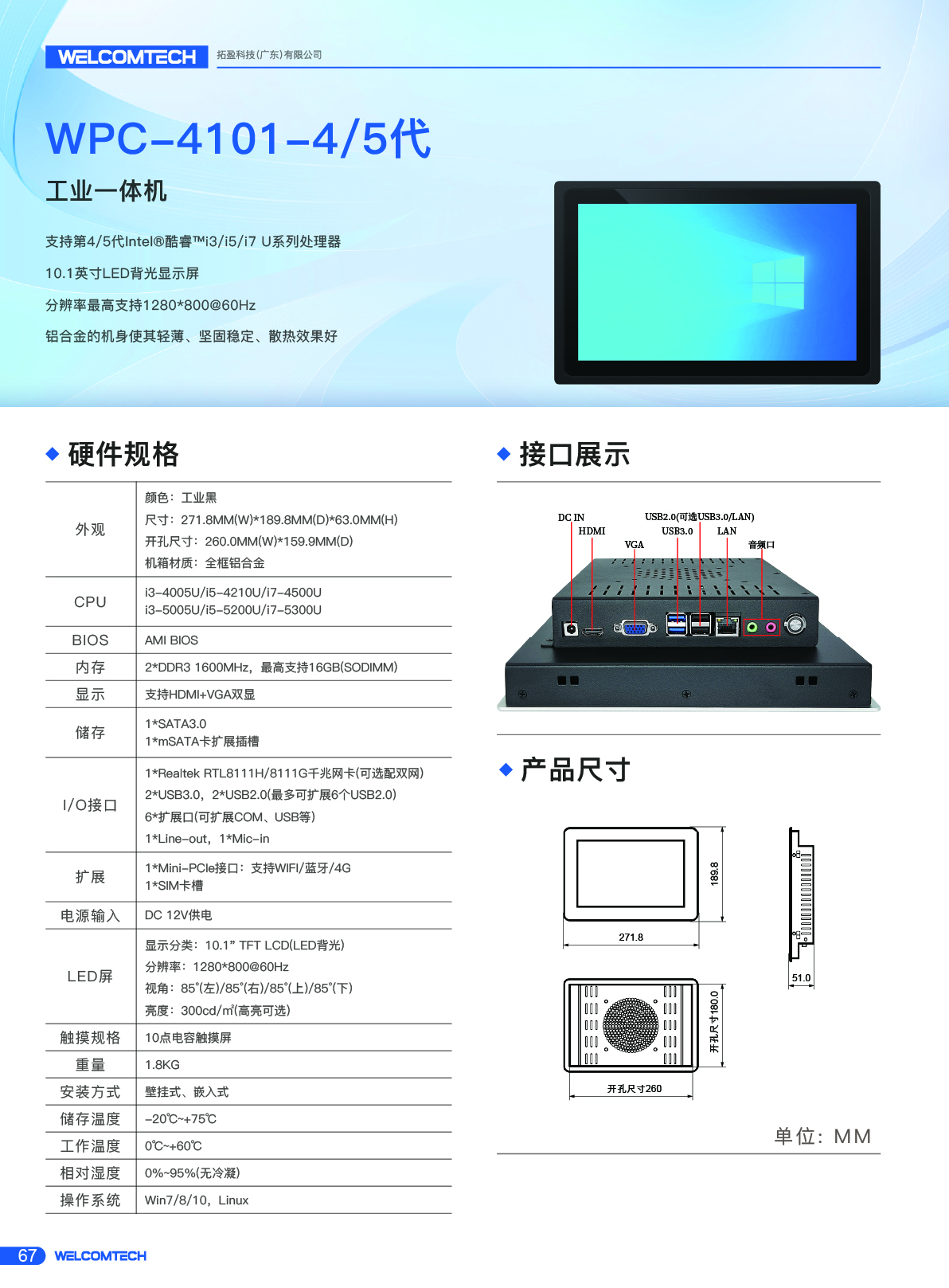 WPC-4101/4代/5代/10.1寸工業觸摸一體機