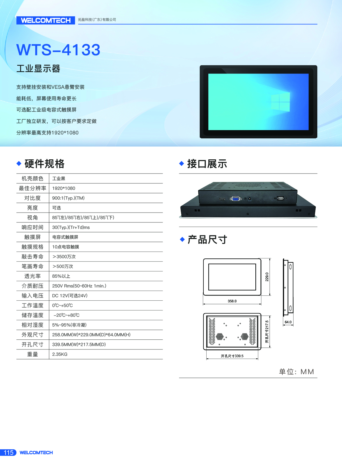 WTS-4133/13.3寸工業顯示器